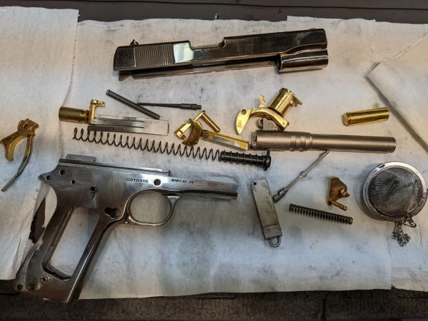 Disassembly, Cleaning, Oiling, and Assembly: A service that includes complete disassembly, inspection of parts for wear/ breakage. Cleaning of all parts to remove grime, carbon and lead fouling. Oiling of firearm in accordance with manufacturer's recommendations. Complete reassembly of the gun followed by the manufacturer's recommended functions check. Additional cost for a gun that is extremely dirty, requires additional service or replacement/ repair to any parts.